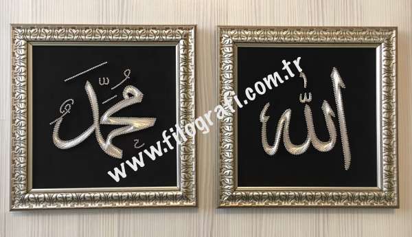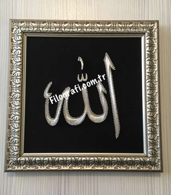 Allah Muhammed Lafzı desenli el yapımı filografi tablo