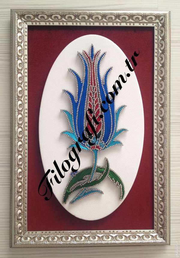 "Filografi Tablolar, Ahşap Üstüne gerilmiş kadife,taytüyü,deri vb. bir zemin üzerine çakılan çiviler arasından tellerin geçirilmesi ve belirli örgü teknikleri kullanılarak çeşitli desenlerin meydana getirildiği bir sanattır. Kullanılan özel örgü teknikleri sayesinde tablo hem 3 boyutlu bir görünüm kazanmakta hemde işlenen teller yansıyan ışıklarla çok güzel renkler vermektedir. Kullanılan teller bakır olup paslanmaz özelliktedir,kullanılan çivilerde paslanmaya karşı özel olarak boyanmaktadır."
