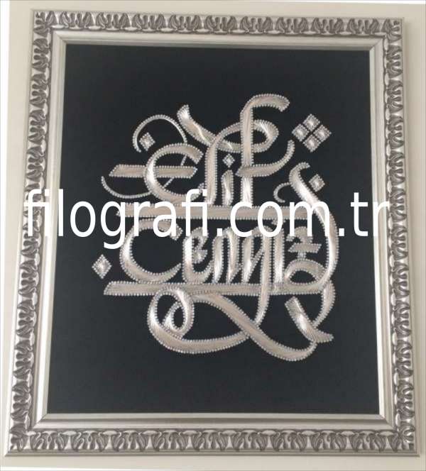 Hat sanatı kullanılarak sizin veya sevdiklerinizin adının filografi tablo üstünde geleceğe miras bırakabileceğiniz özel bir tablo.